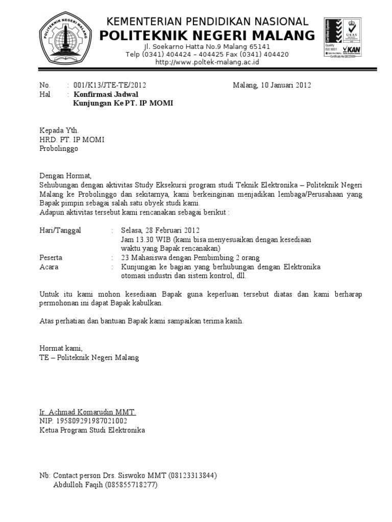 Surat Kunjungan Industri Ke Panasonic 2011 Pdf